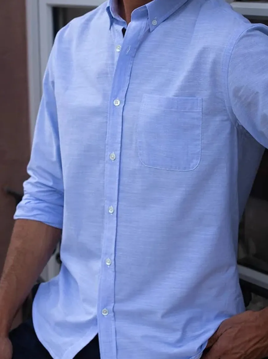 Entrez dans l’univers poétique de Monsieur Mimosa. La chemise chambray bleu ciel est un incontournable du vestiaire masculin élégant et décontracté. Confectionnée dans un chambray de coton italien de la maison Albini, on ne peut pas rêver mieux en terme de qualité.