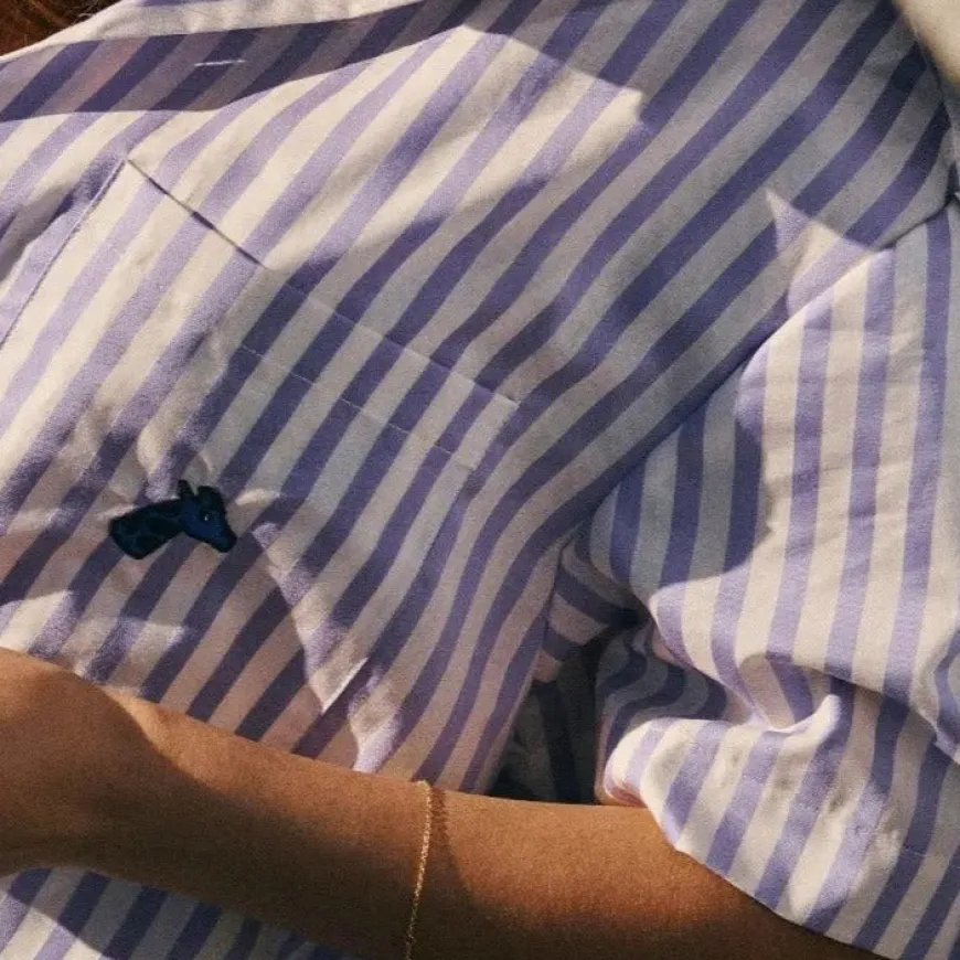 Pour cet été, adoptez un look rayures un peu pastel avec la superbe chemisette upcyclée de chez Girafon Bleu.