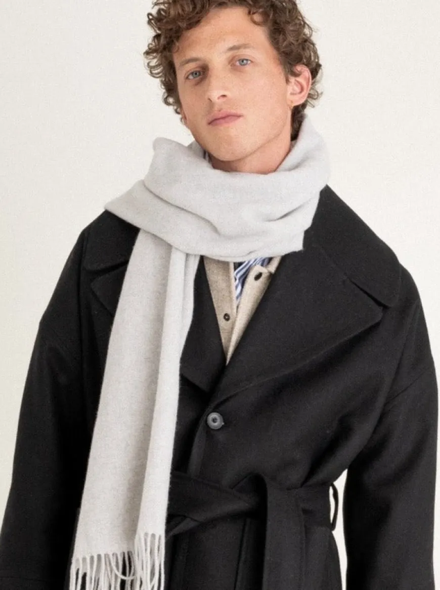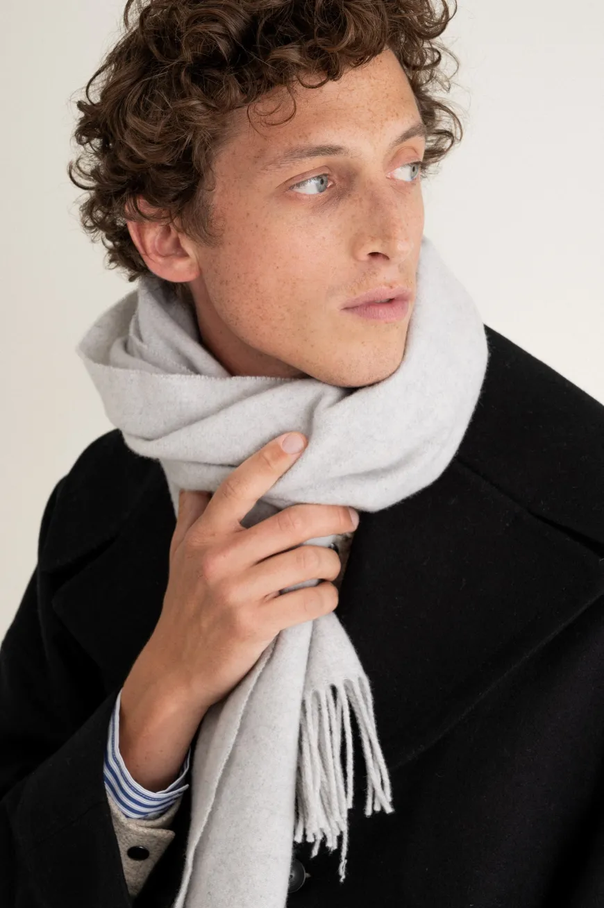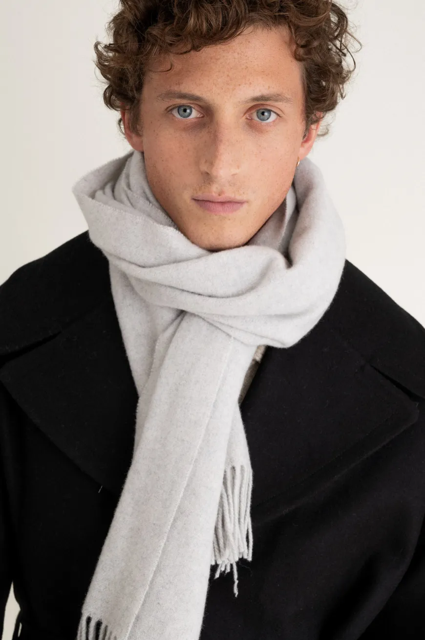 Longue écharpe tissée, en laine et cachemire recyclés.