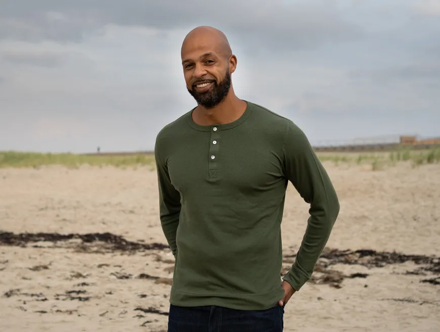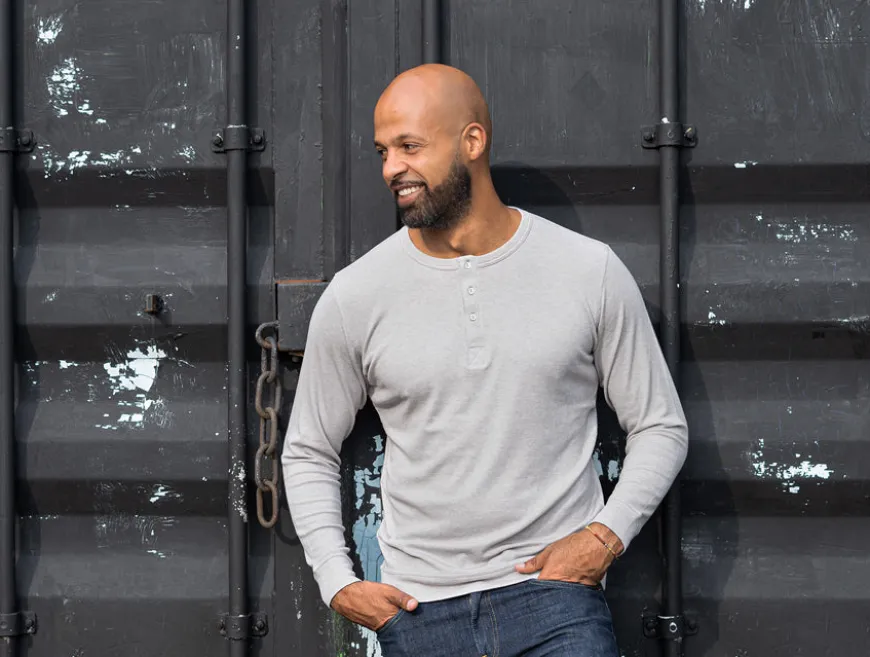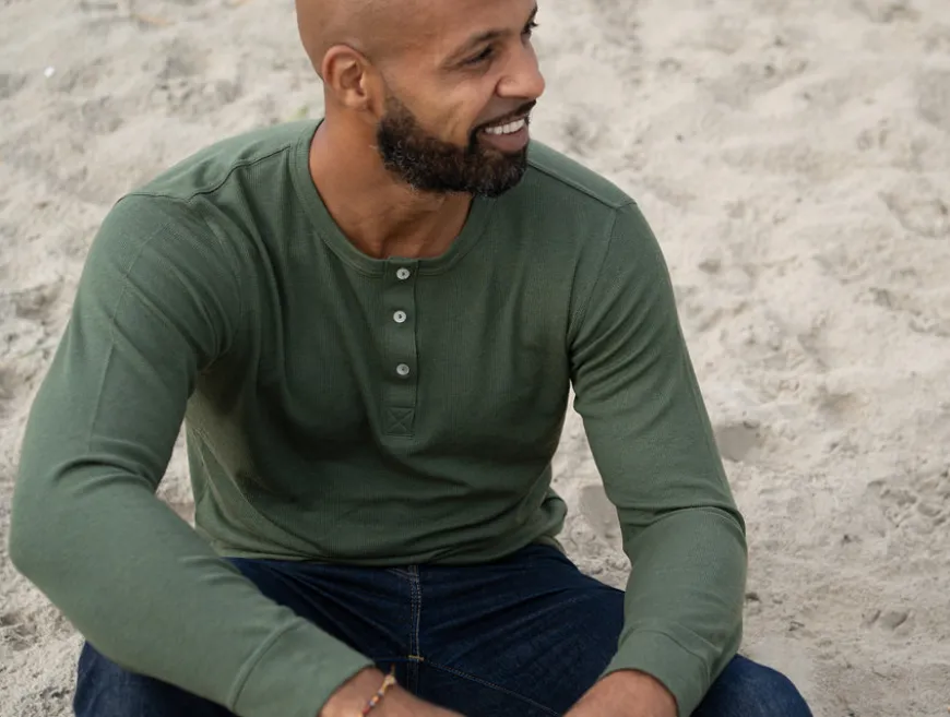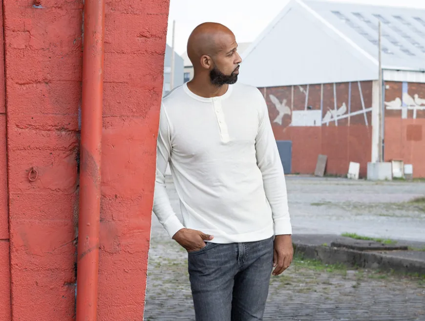 À l’origine sous-vêtement masculin, le Henley a traversé les âges et les modes pour devenir un vêtement à part entière, apprécié par les sportifs et les héros du cinéma d’action.
