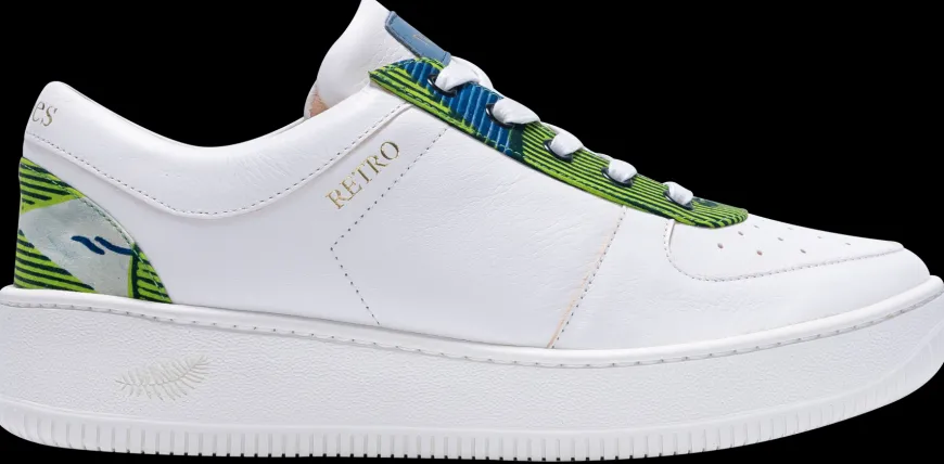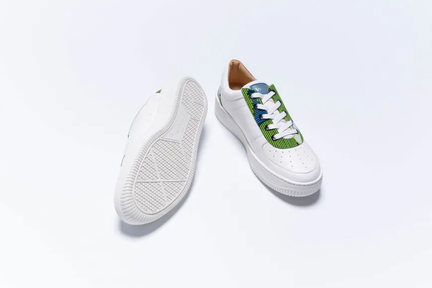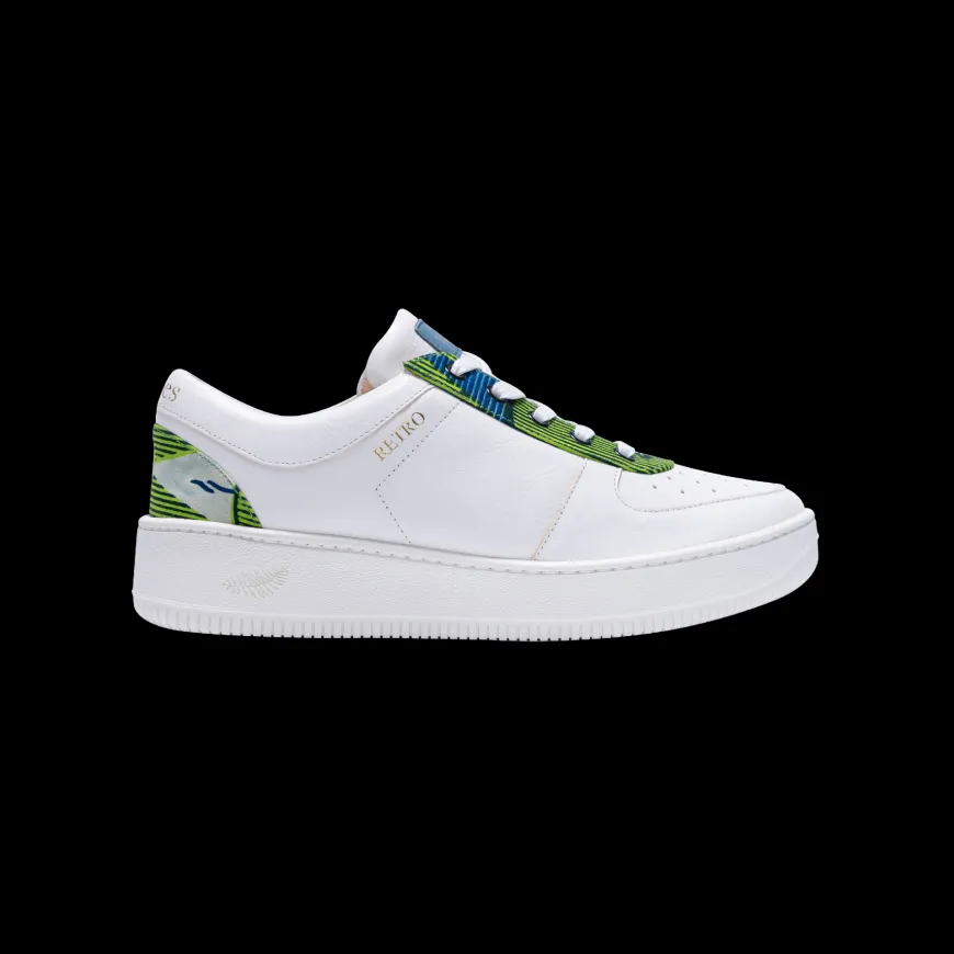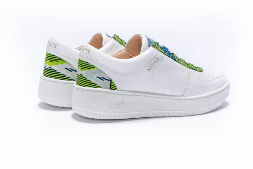Les baskets néo-rétro durables en cuir haut de gamme par Wibes. Elles sont épurées, sophistiquées, et revisitent avec peps une forme rétro à semelle épaisse. Signature de Wibes, la touche colorée de tissu Wax Ivoirien vient ensoleiller l’ensemble.