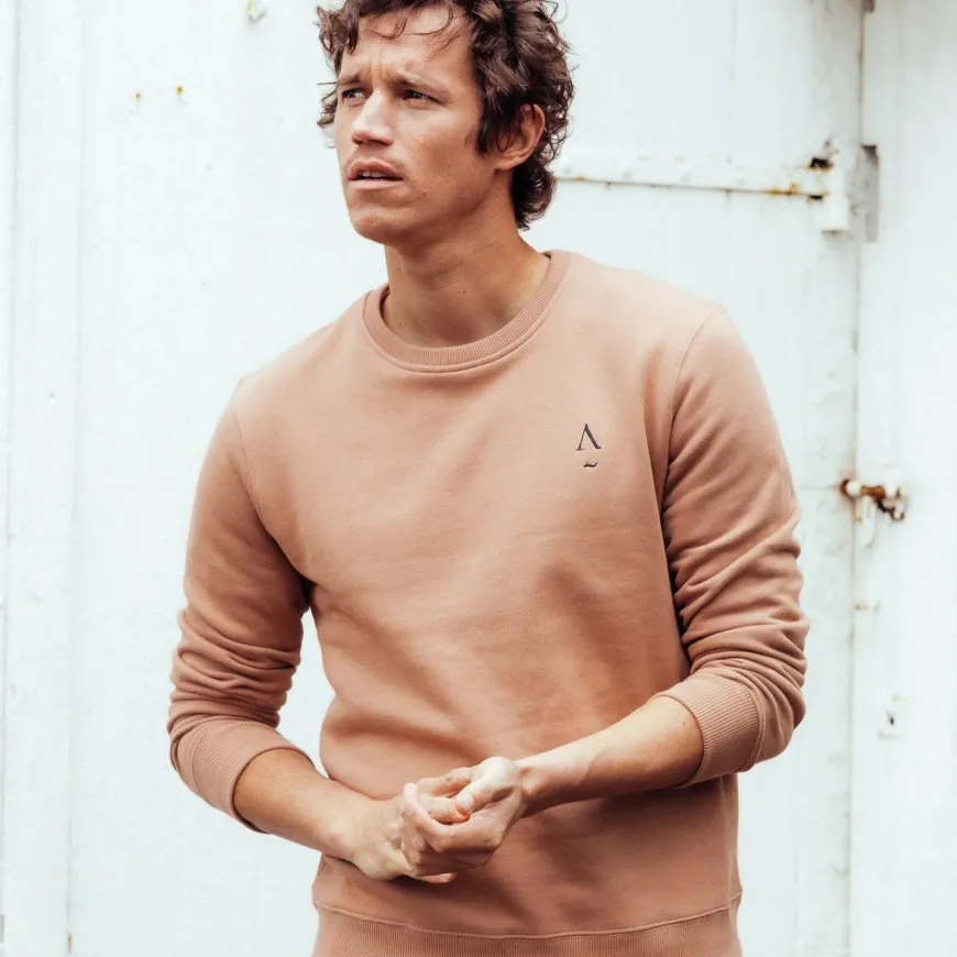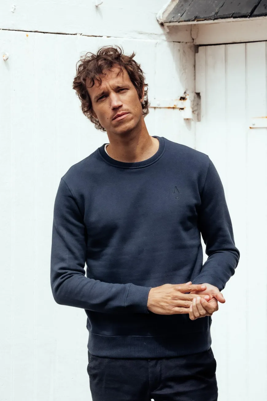 Le sweatshirt, c’est le bon basique du vestiaire masculin dont on a toujours besoin. Apnée le décline en camel et bleu marine, 100% coton bio certifié GOTS et fabriqué au Portugal. Confort absolu.