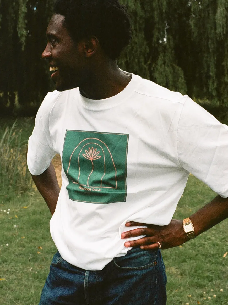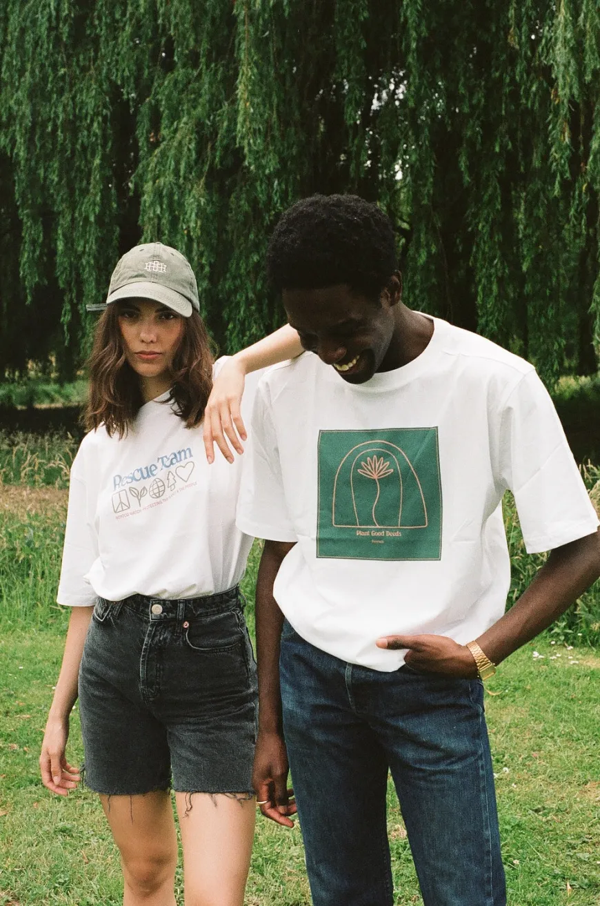 T-shirt sérigraphié en jersey de coton bio, col rond et manches courtes. Imaginé en collaboration avec l’artiste @keepeartharound