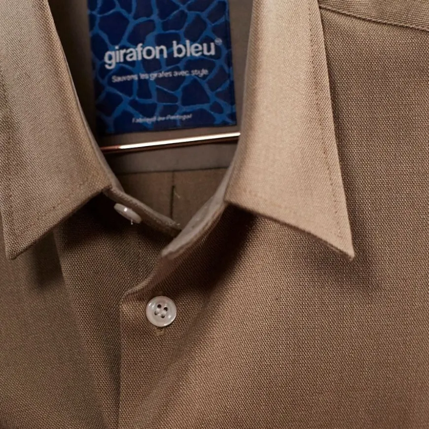 Chemise 100% upcyclée : la création de cette chemise n’a nécessité aucune production de tissus. Girafon Bleu a récupéré des stocks dormants à l’origine destinés à d’autres entreprises textiles !