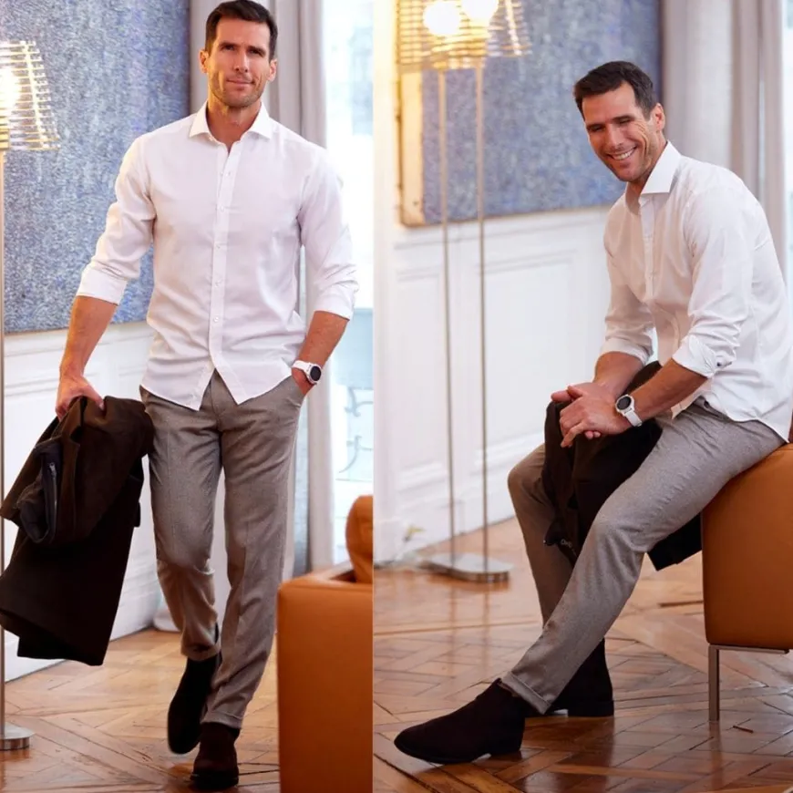 Le pantalon de ville sans pince, revisité en version sportive par Wolbe.