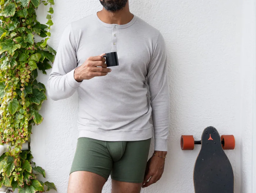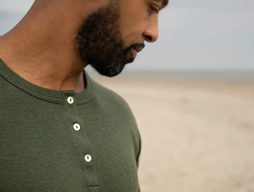 À l’origine sous-vêtement masculin, le Henley a traversé les âges et les modes pour devenir un vêtement à part entière, apprécié par les sportifs et les héros du cinéma d’action.