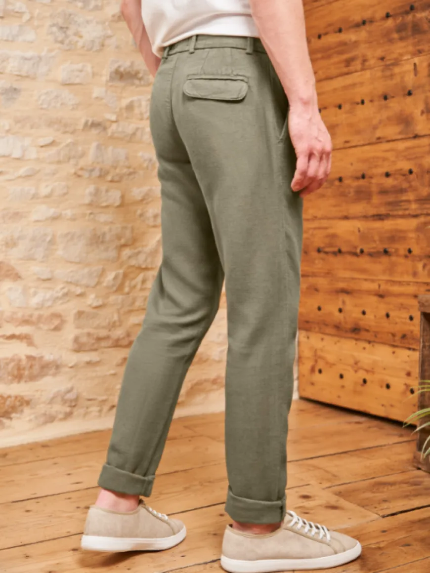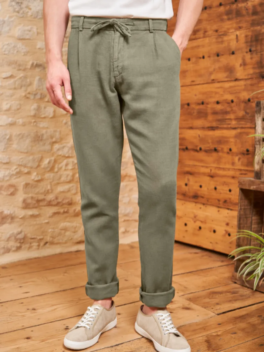 Jogpant Gaston coton et lin kaki