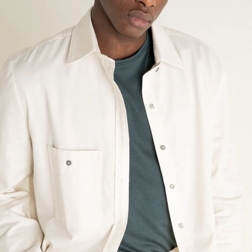Cette surchemise éco-responsable pour homme de la marque Noyoco est fabriquée en coton bio certifé GOTS, économe en eau et sans pesticide. Superposée au-dessus d’un T-shirt, elle offre confort, style et décontraction.