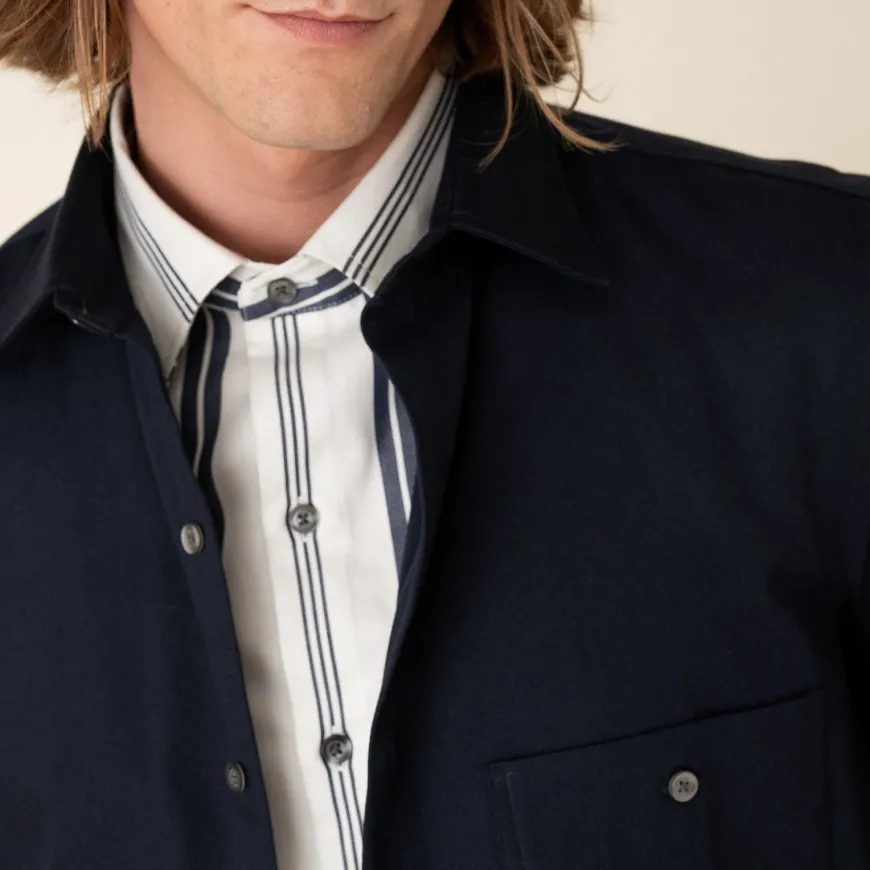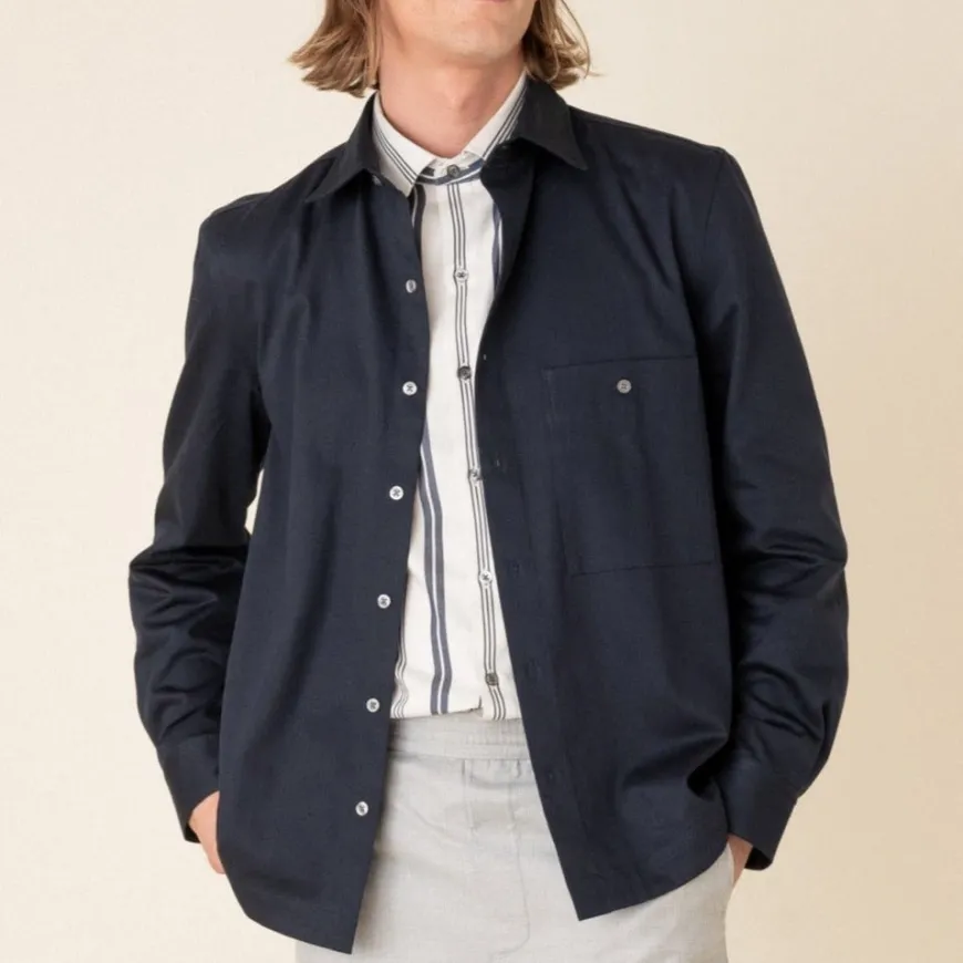 Cette surchemise éco-responsable pour homme de la marque Noyoco est fabriquée en coton bio certifé GOTS, économe en eau et sans pesticide. Superposée au-dessus d’un T-shirt, elle offre confort, style et décontraction.