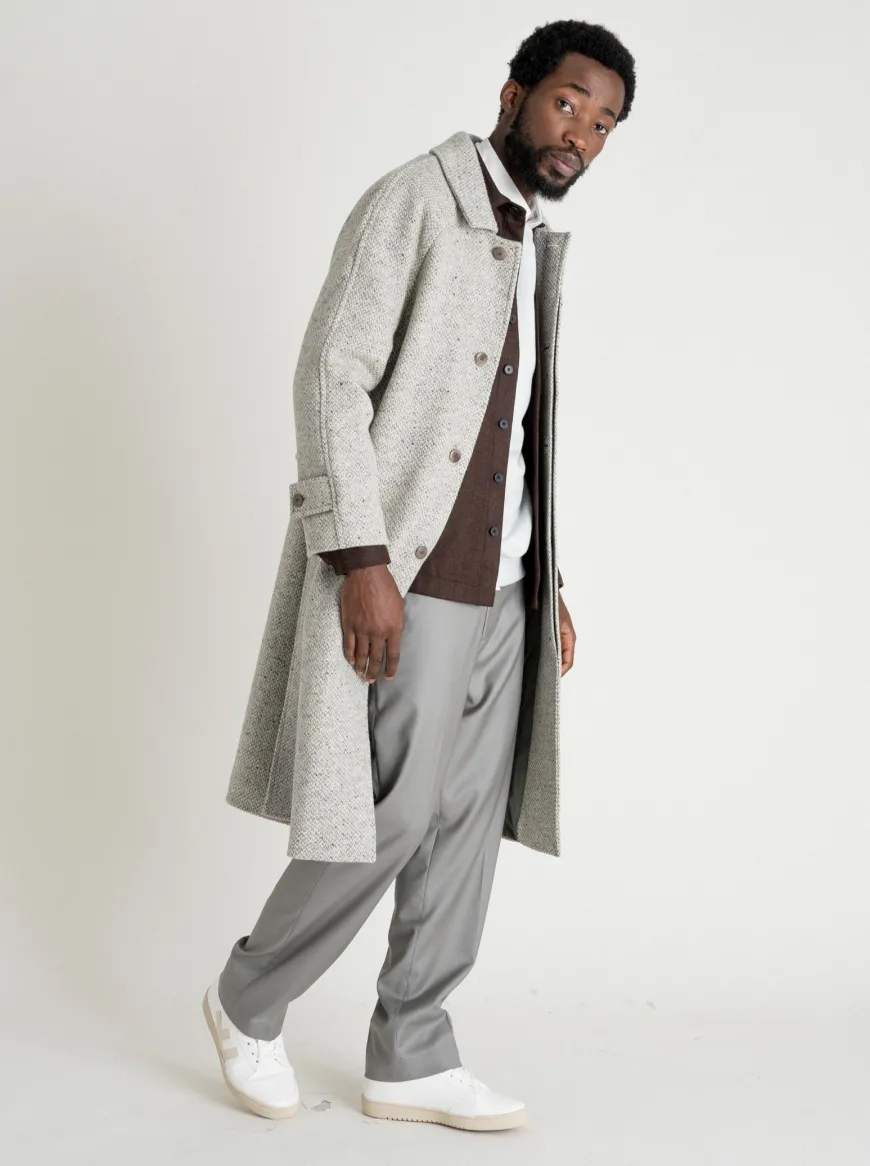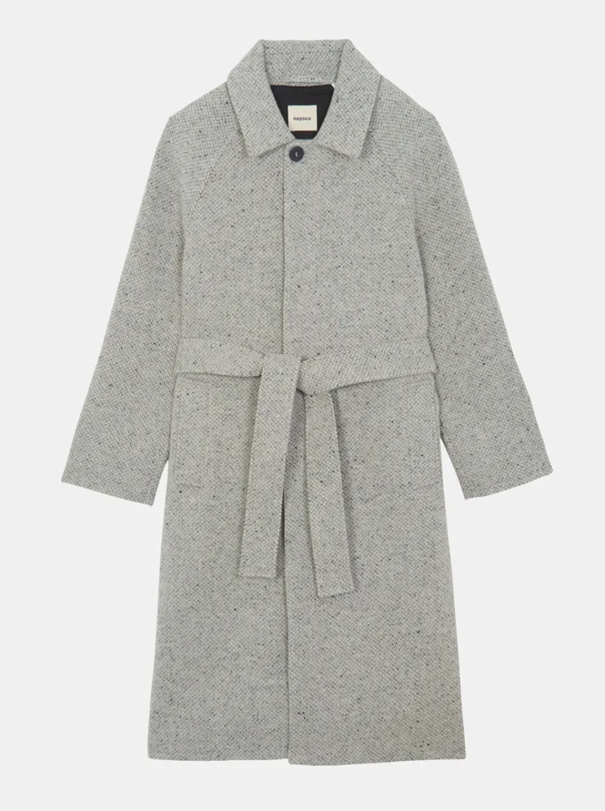 Ce superbe manteau long en laine recyclées offrira à votre look une allure décontractée tout en gardant une élégance incomparable. La matière, la coupe, le porté … tout est noble dans ce manteau !