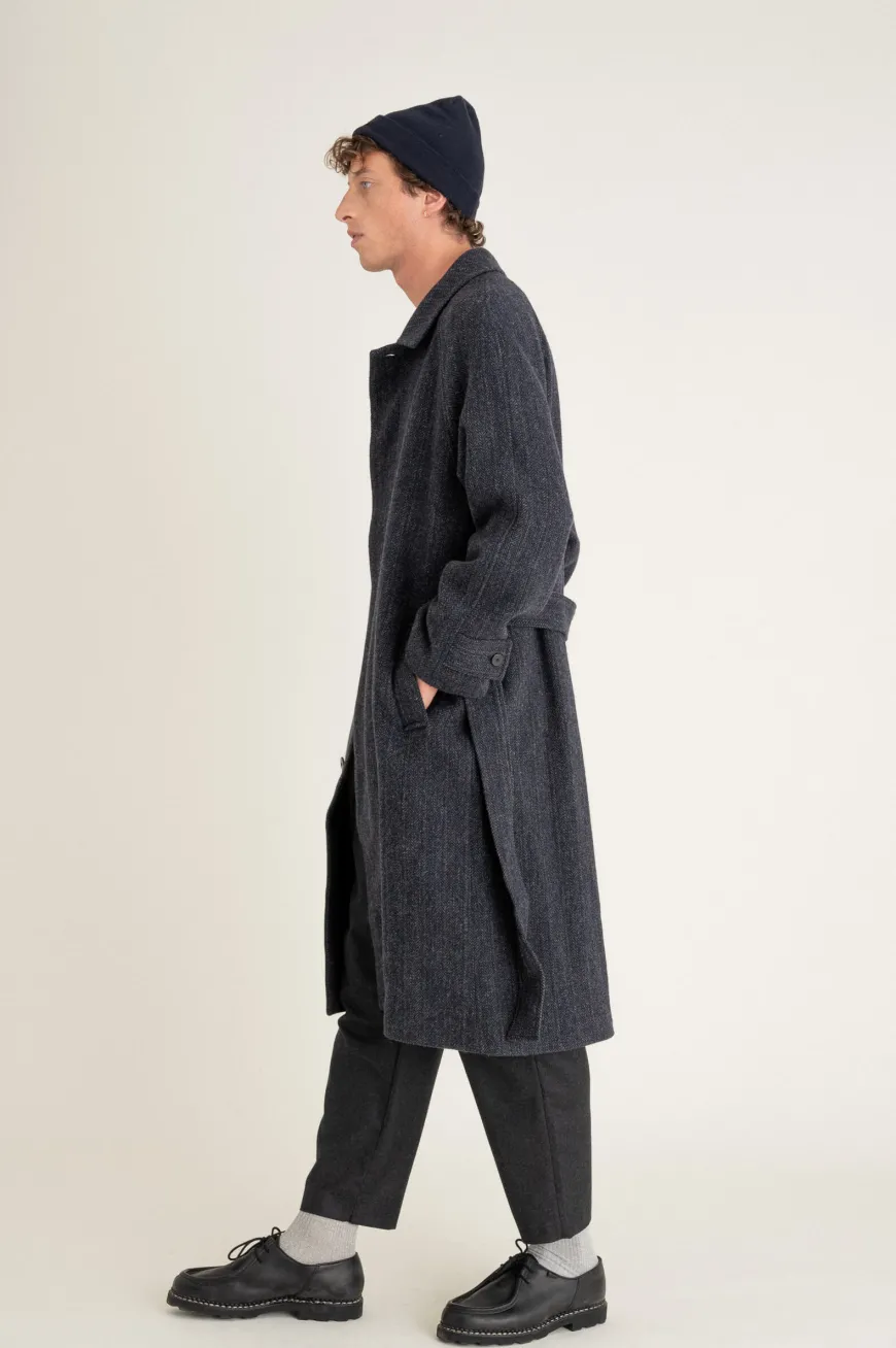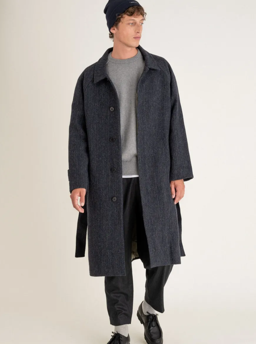 Ce superbe manteau long en laine recyclées offrira à votre look une allure décontractée tout en gardant une élégance incomparable. La matière, la coupe, le porté … tout est noble dans ce manteau !