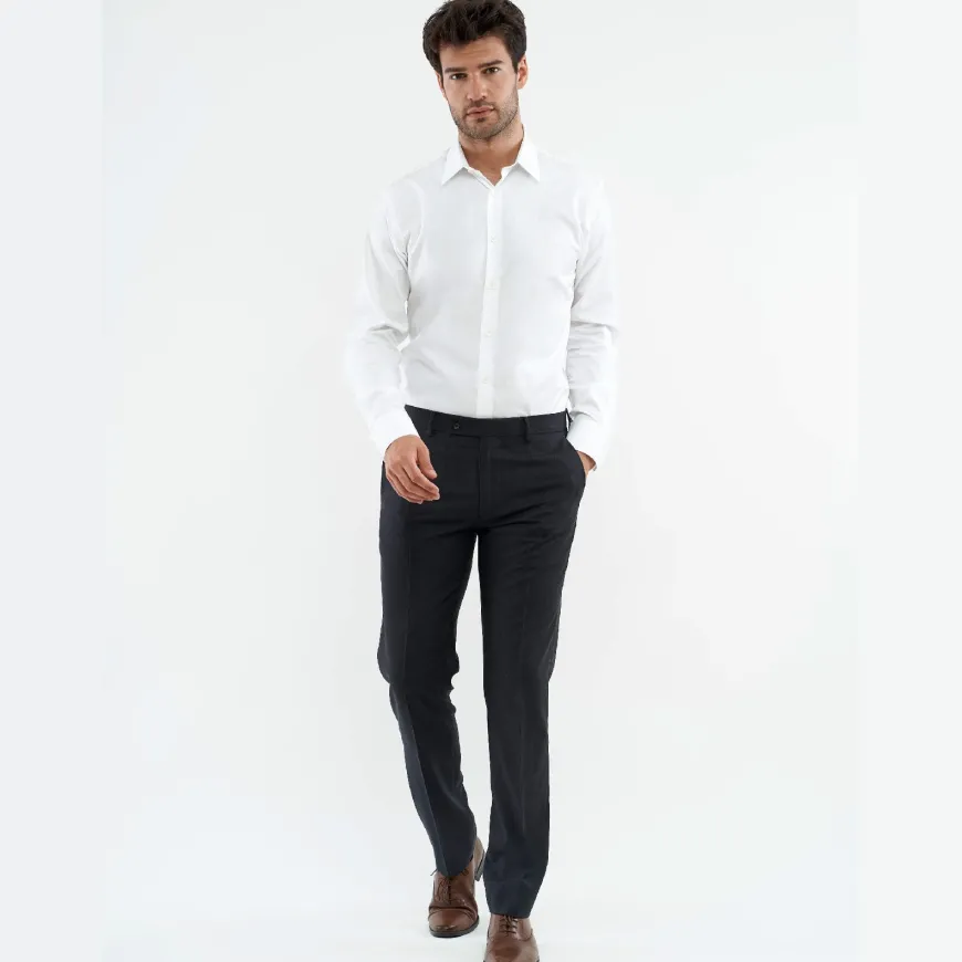 Pantalon élégant en laine mérinos se portant aussi bien avec une chemise pour un look habillé qu’avec un t-shirt pour un look chic décontracté.