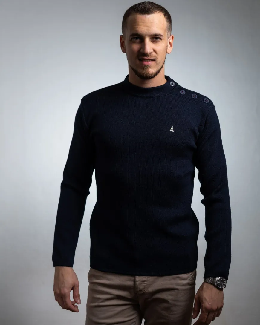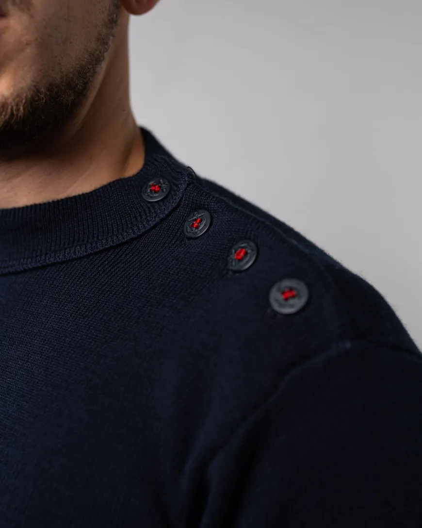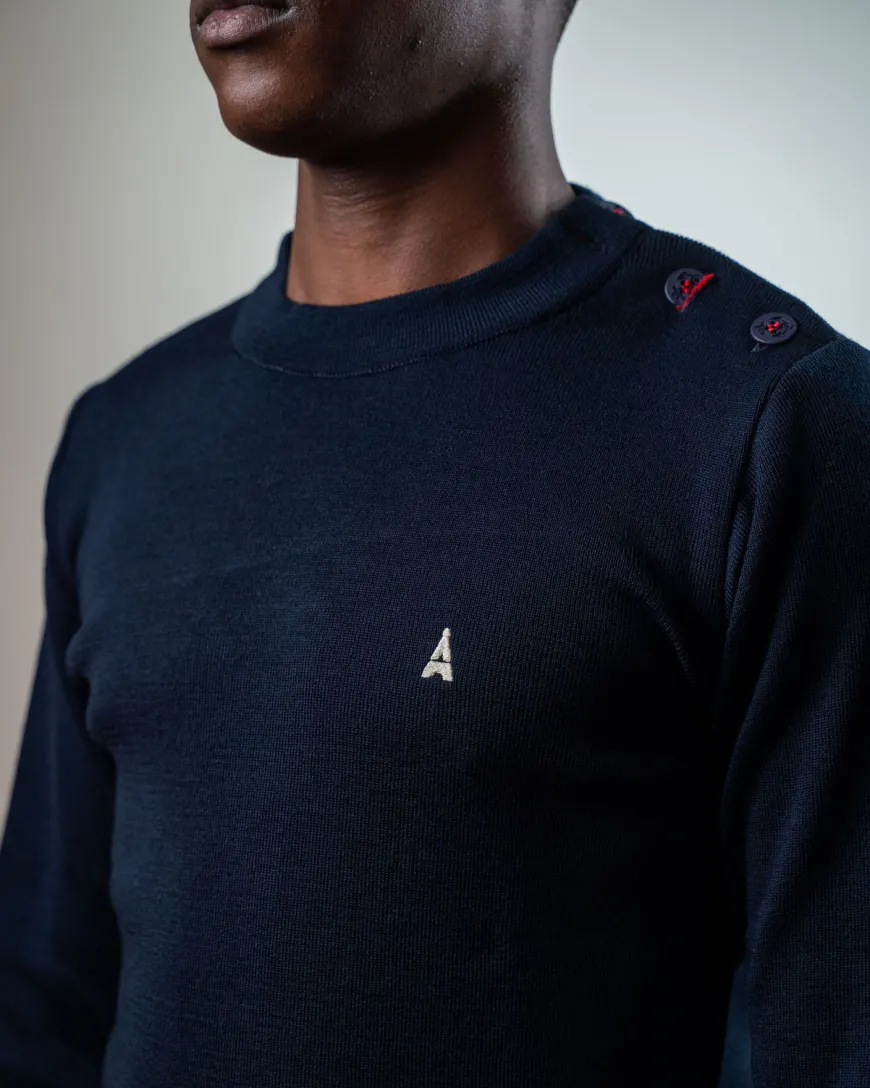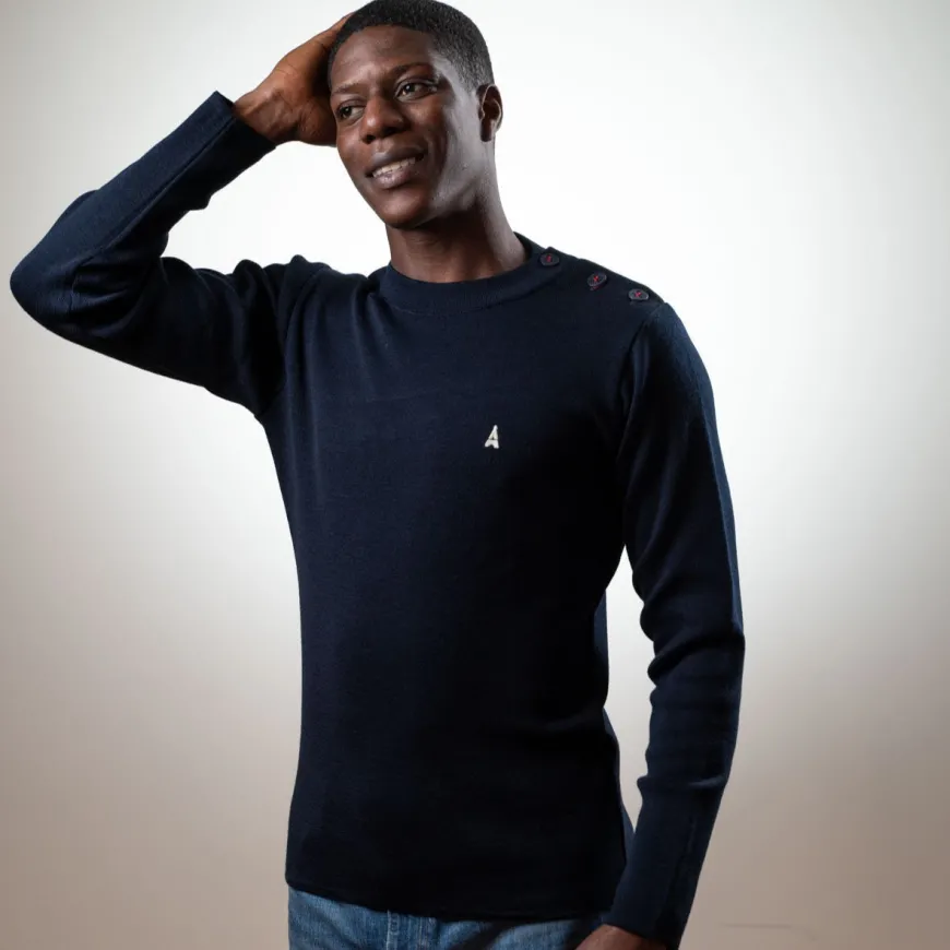 Voici le pull marin revisité par Maison FT en laine mérinos et acrylique recyclé. Il vous accompagnera tout en douceur lors des saisons froides ou vous réchauffera lors des soirées fraiches d’été.