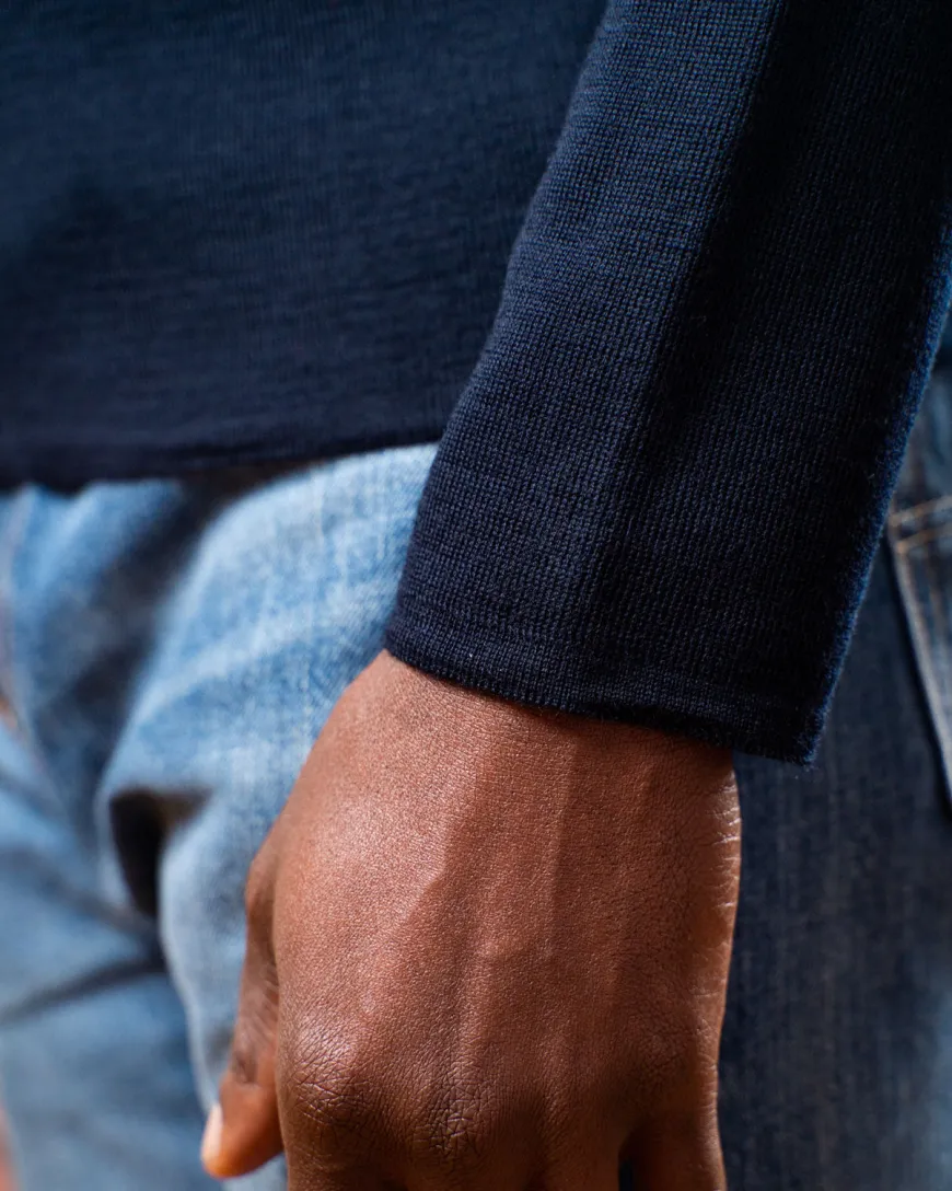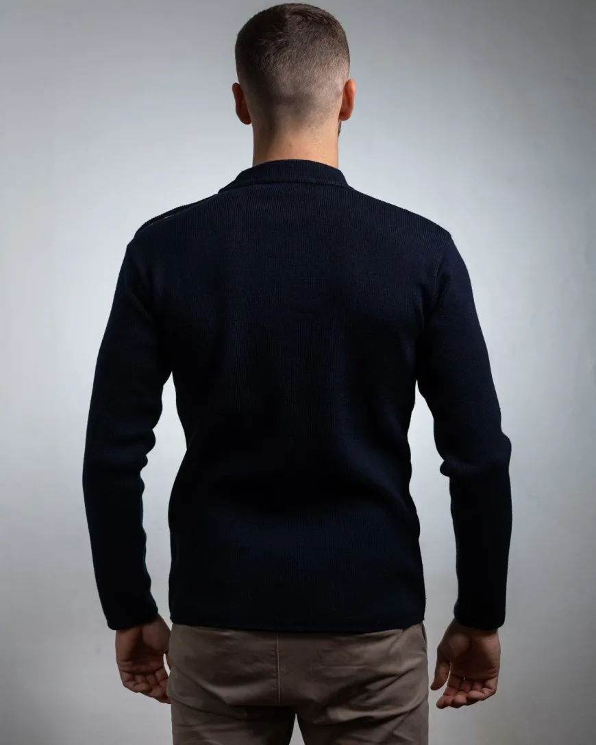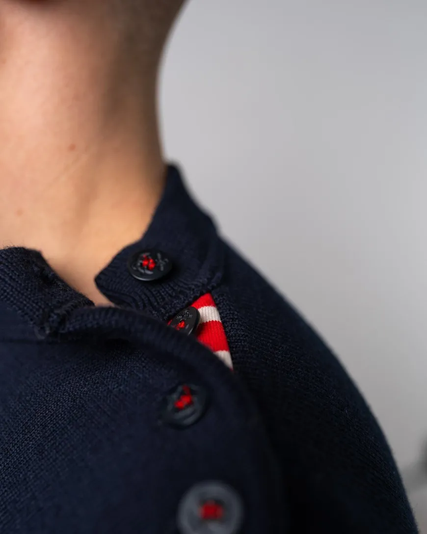 Voici le pull marin revisité par Maison FT en laine mérinos et acrylique recyclé. Il vous accompagnera tout en douceur lors des saisons froides ou vous réchauffera lors des soirées fraiches d’été.