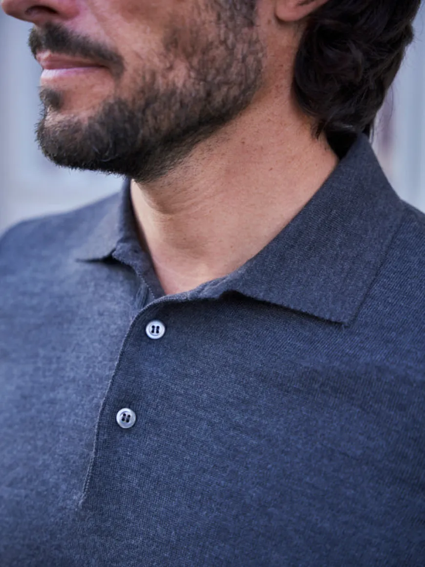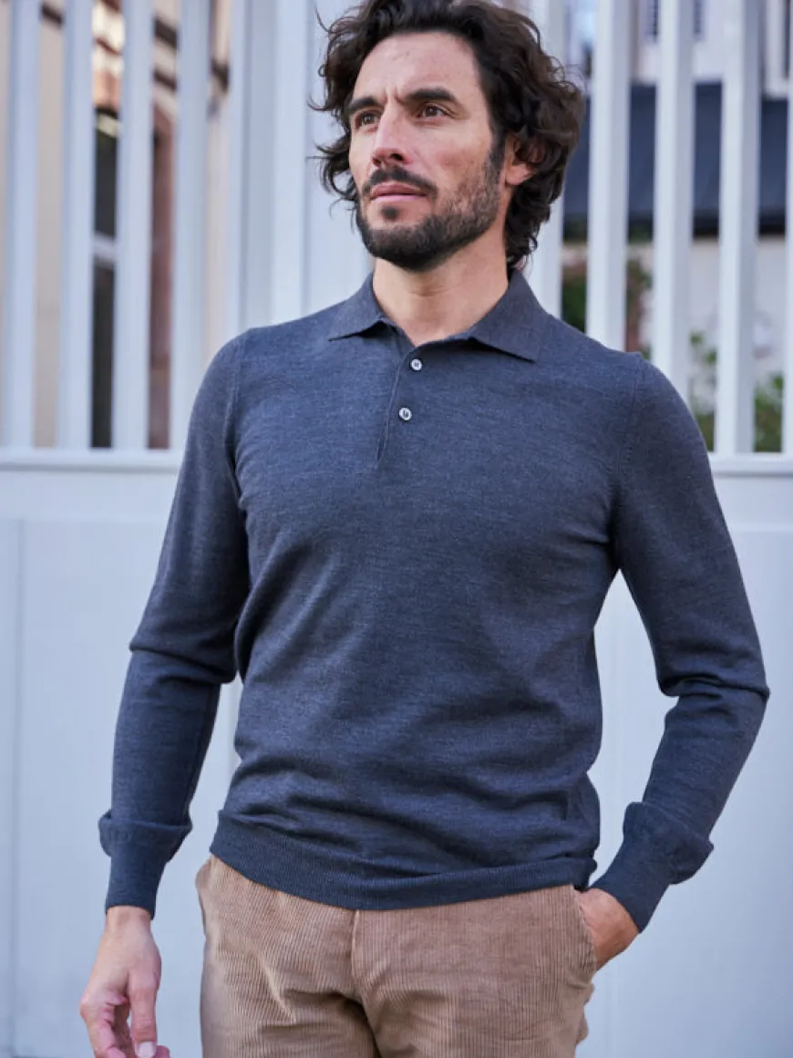 Pull en laine col polo Jonas gris foncé