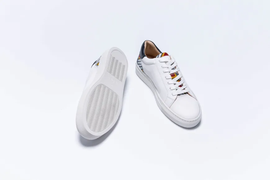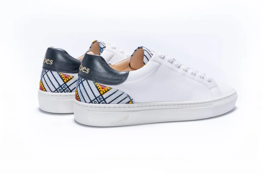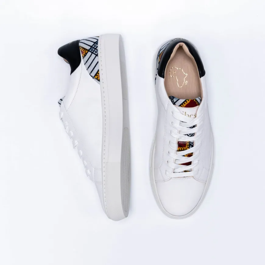 Les sneakers durables en cuir haut de gamme par Wibes. Elles sont épurées, sophistiquées, et interprètent avec énergie la sneakers urbaine. Signature de Wibes, la touche colorée de tissu Wax Ivoirien vient ensoleiller l’ensemble.