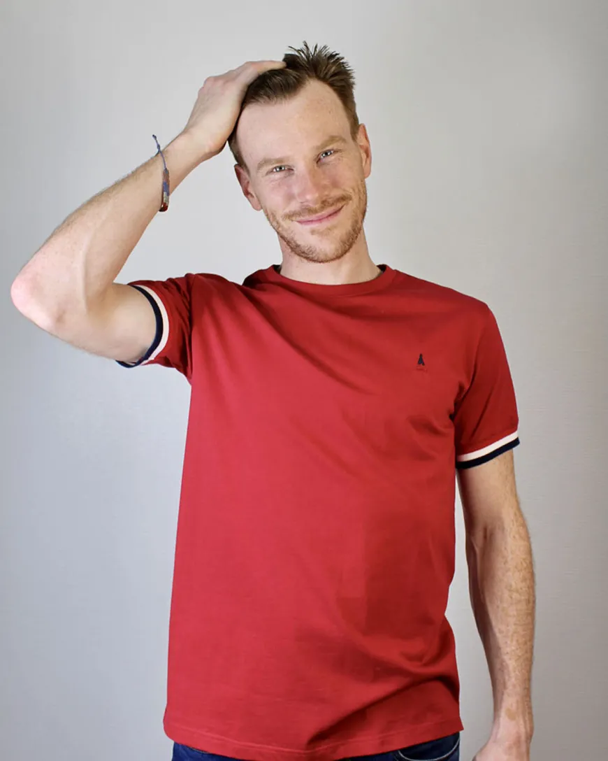 T-shirt 100% coton bio, 180 g/m² de douceur. Pour info, ce T-shirt n’a parcouru en moyenne que 1580 kilomètres avant d’arriver dans votre armoire. Pas mal non ?