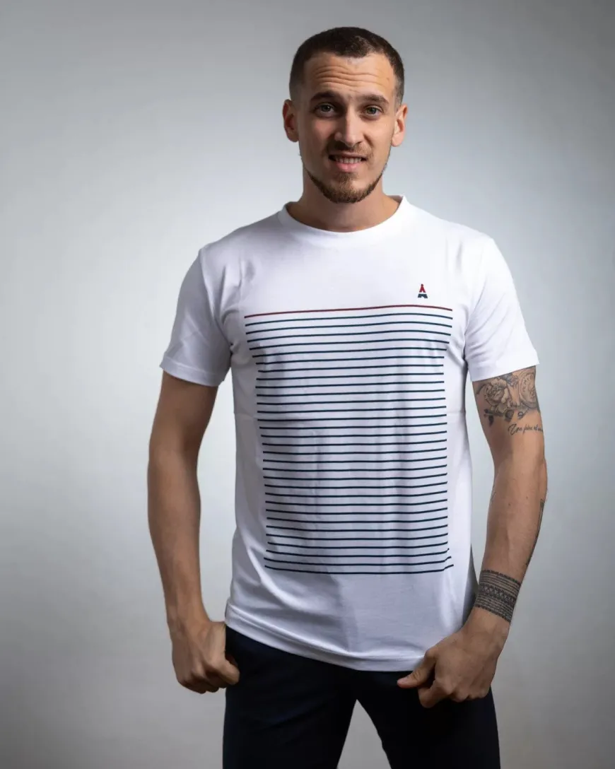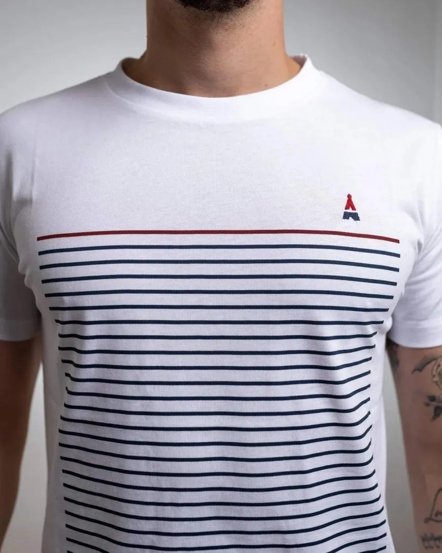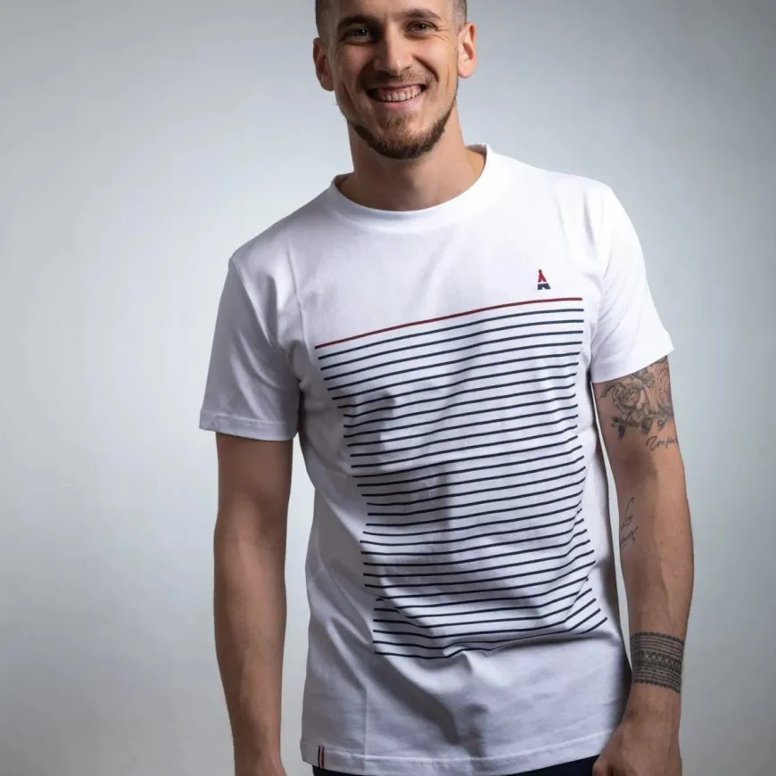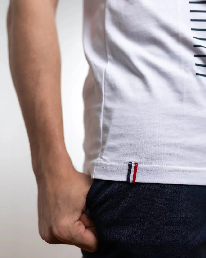 T-shirt 100% coton bio, 180 g/m² de douceur. Pour info, ce T-shirt n’a parcouru en moyenne que 1580 kilomètres avant d’arriver dans votre armoire. Pas mal non ?