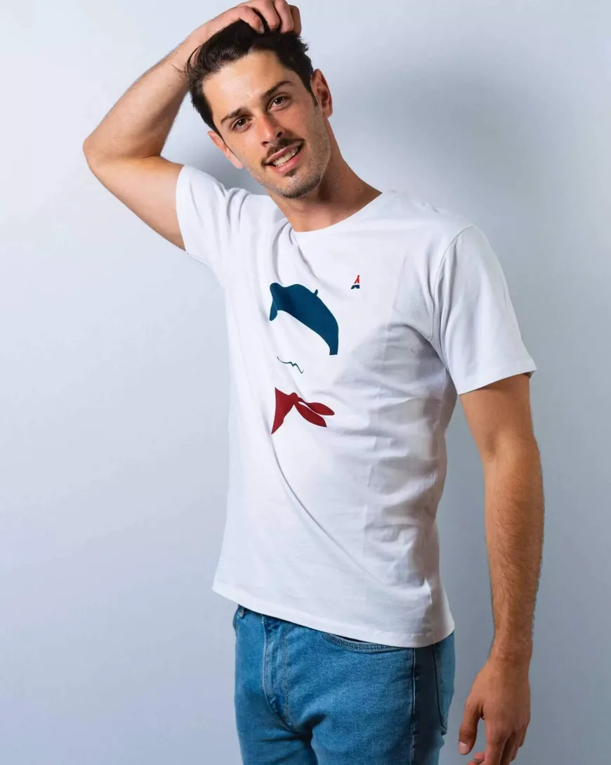 T-shirt 100% coton bio, 180 g/m² de douceur. Pour info, ce T-shirt n’a parcouru en moyenne que 1580 kilomètres avant d’arriver dans votre armoire. Pas mal non ?