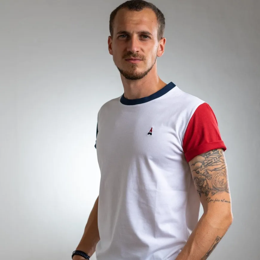 T-shirt 100% coton bio, 180 g/m² de douceur. Pour info, ce T-shirt n’a parcouru en moyenne que 1580 kilomètres avant d’arriver dans votre armoire. Pas mal non ?