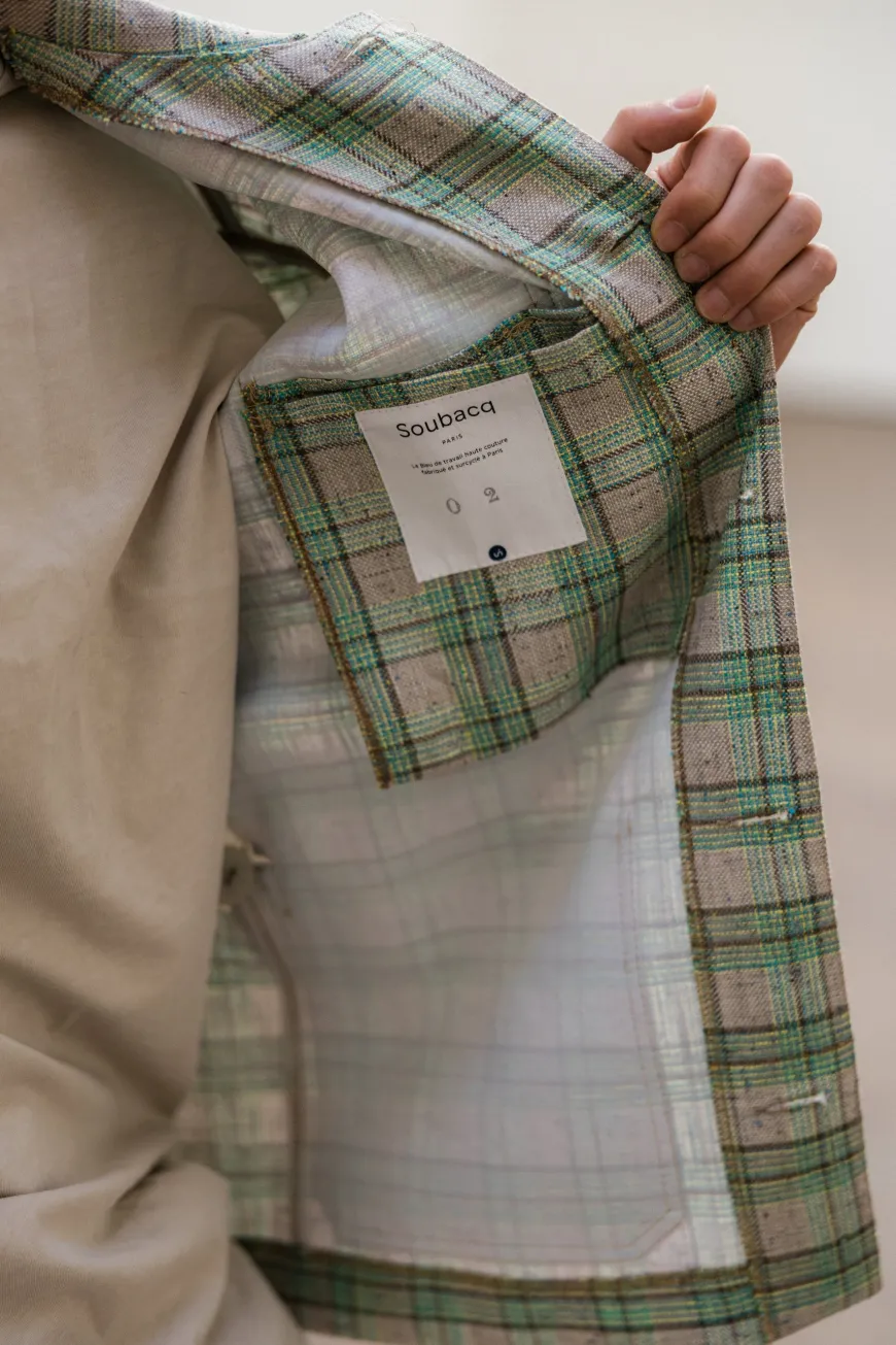 Le Bleu Soubacq, c’est une coupe intemporelle inspiration workwear et une confection de qualité dans leur atelier Parisien d’Arts-et-Métiers. Décliné chaque semaine en série limitée à partir d’étoffes exclusives revalorisées, issues des surplus de tissu des plus belles marques de luxe — retrouvez plus bas les particularités de celui-ci dans « Détails et matières ».