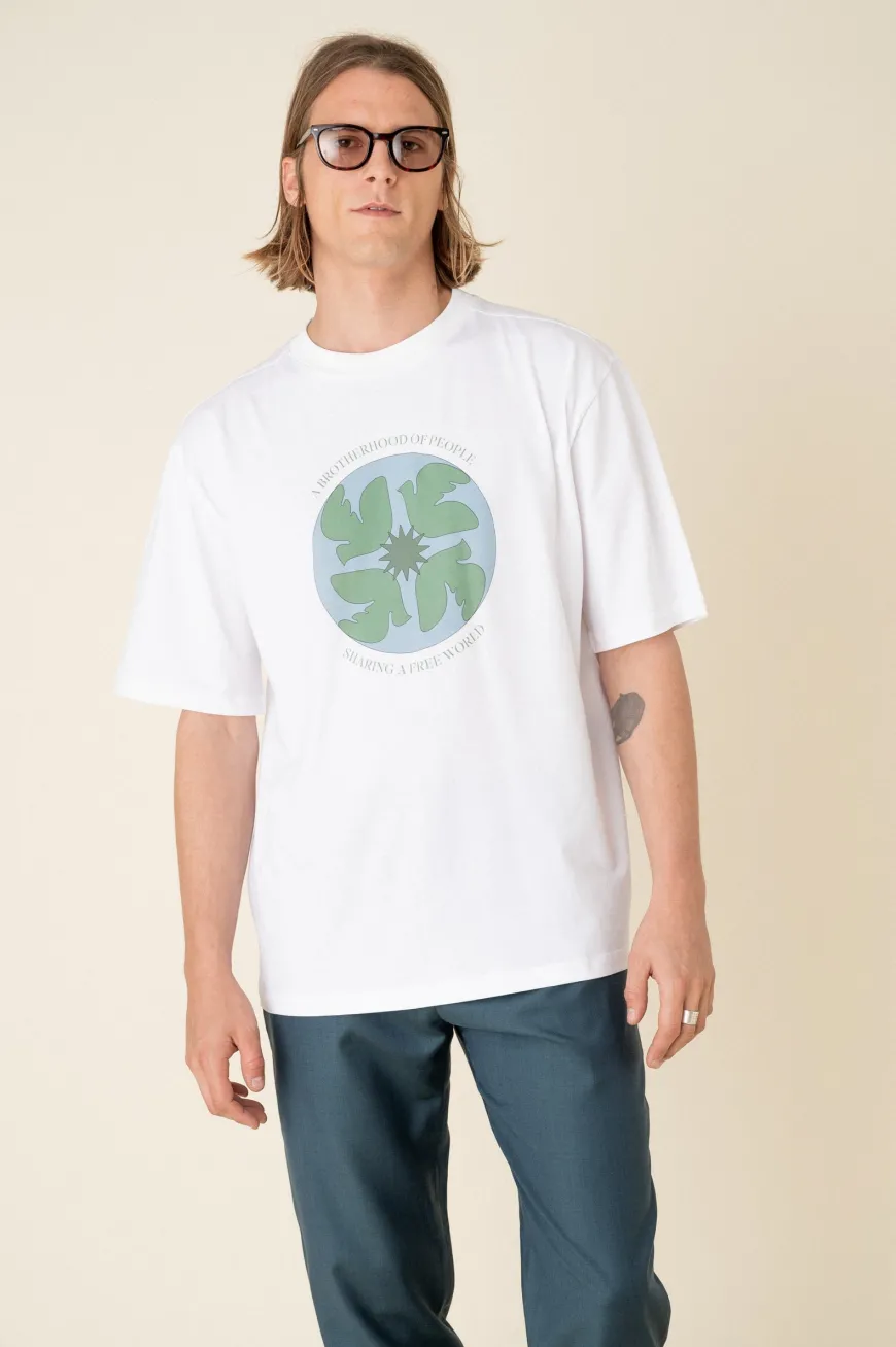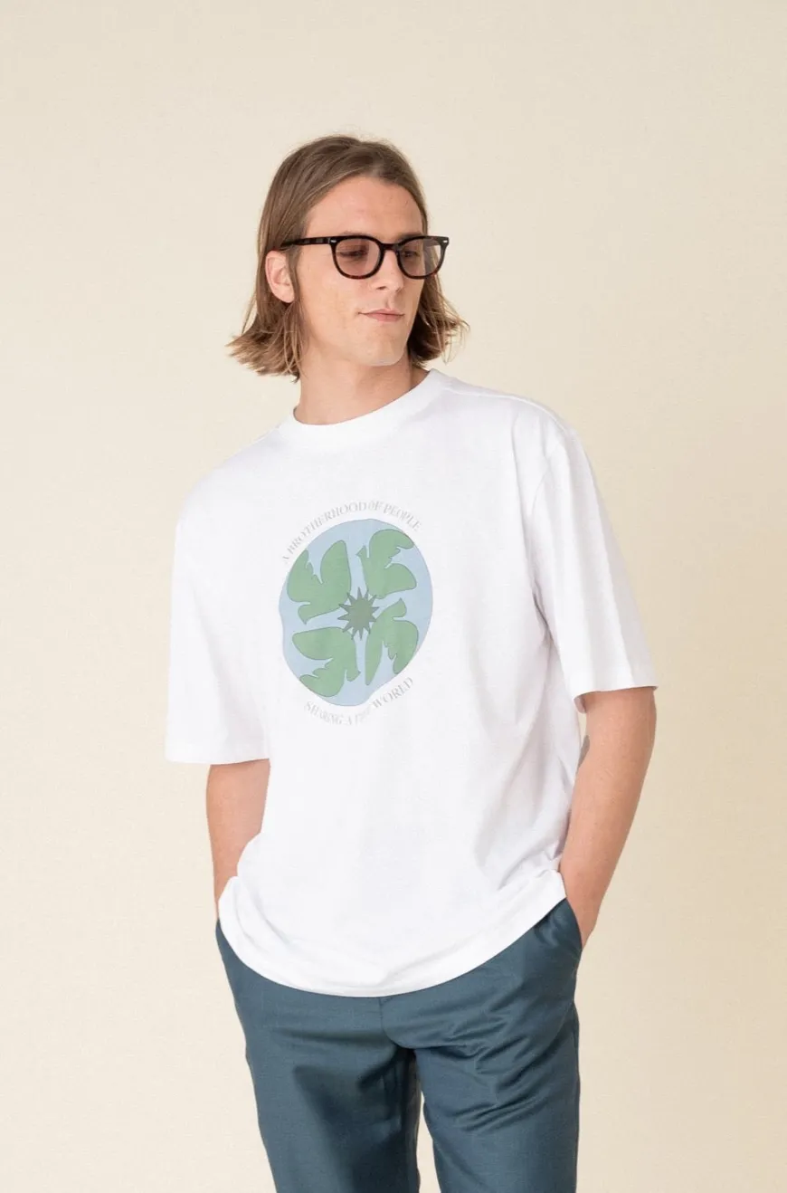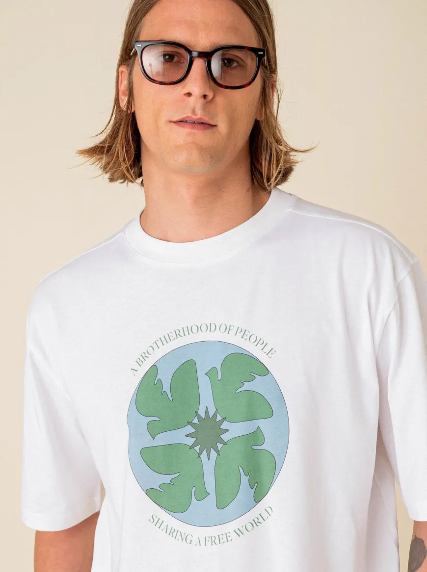 T-shirt sérigraphié en jersey de coton bio, col rond et manches courtes. Imaginé en collaboration avec l’artiste @wolf.bomb